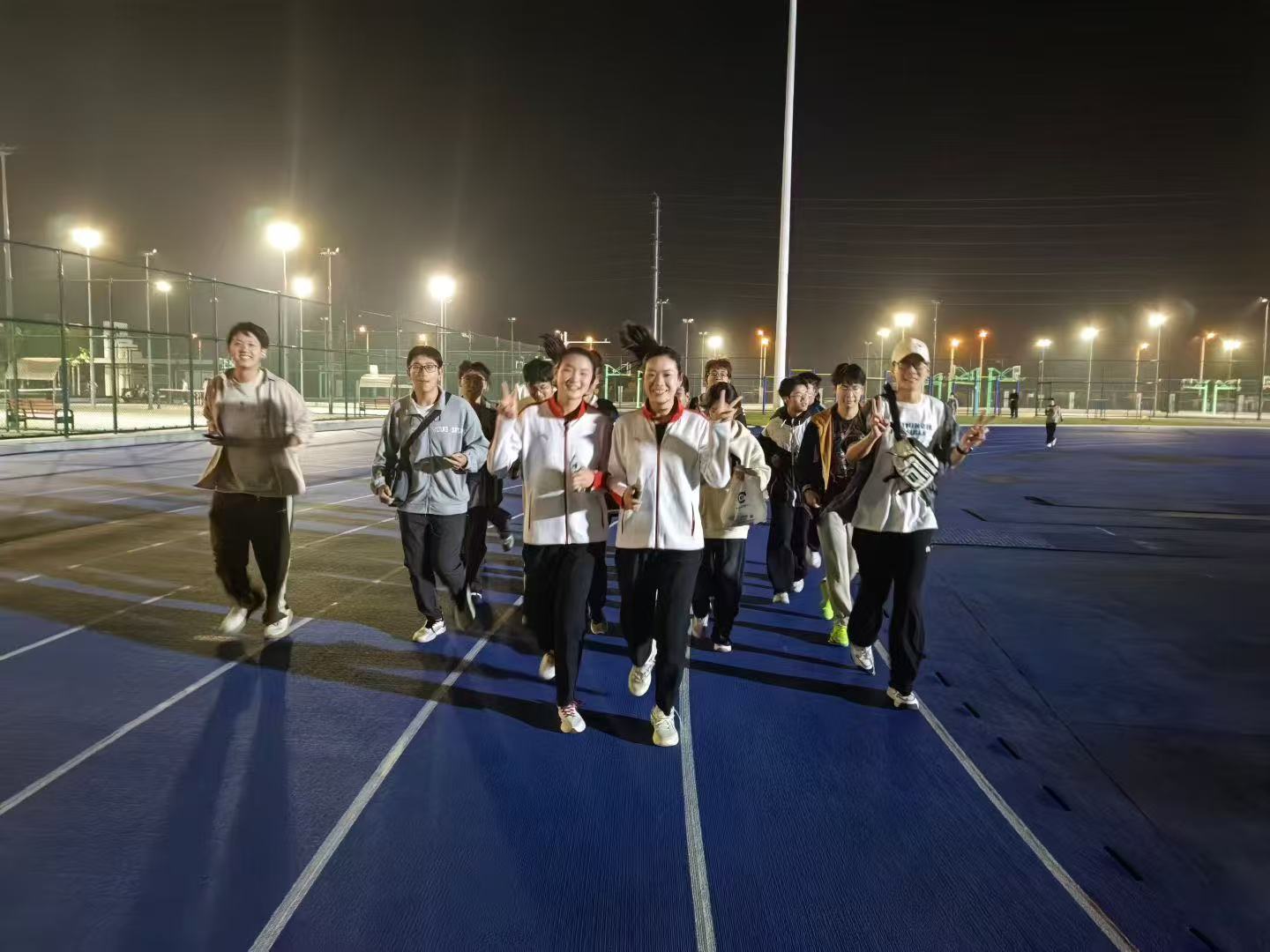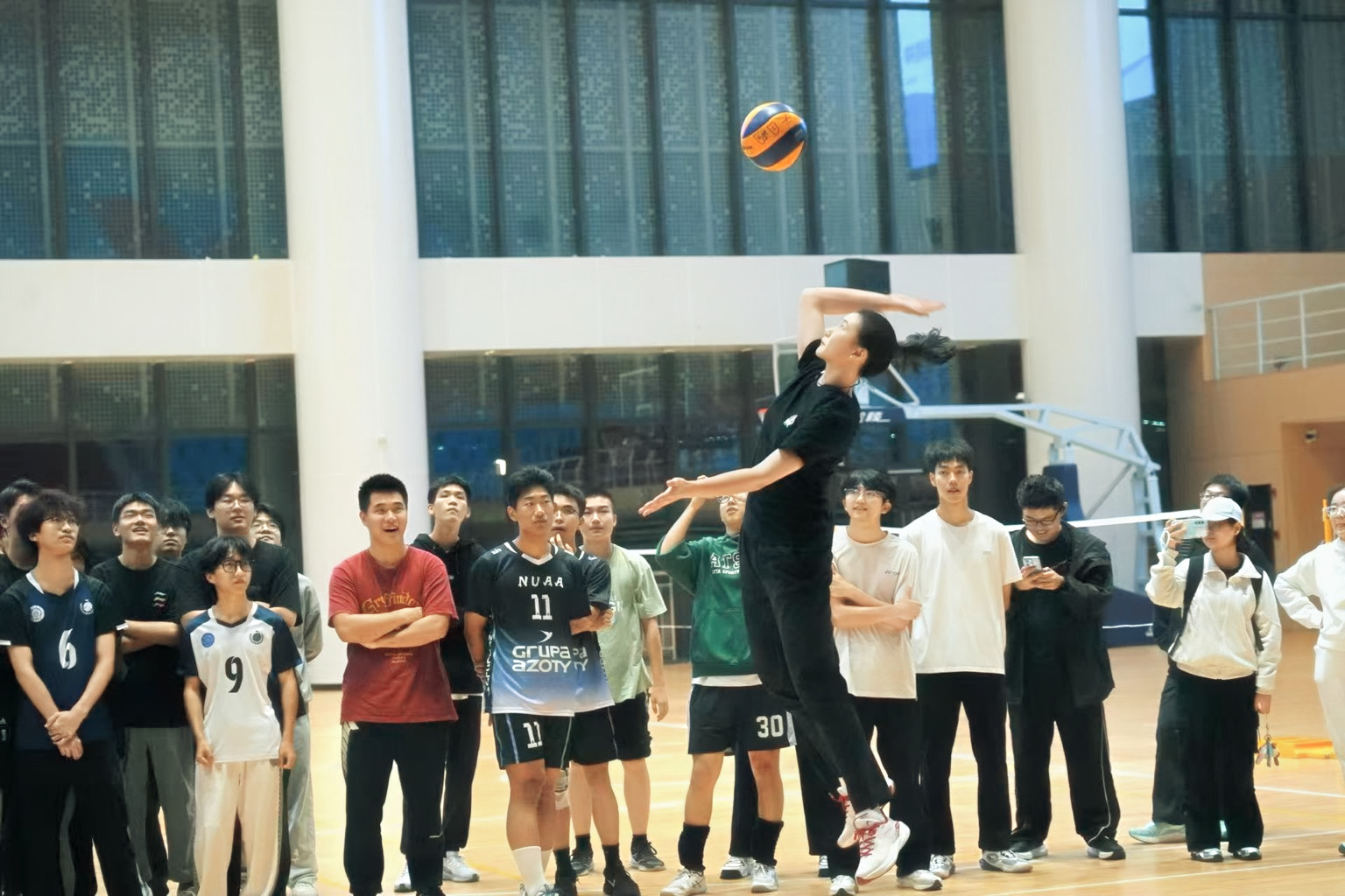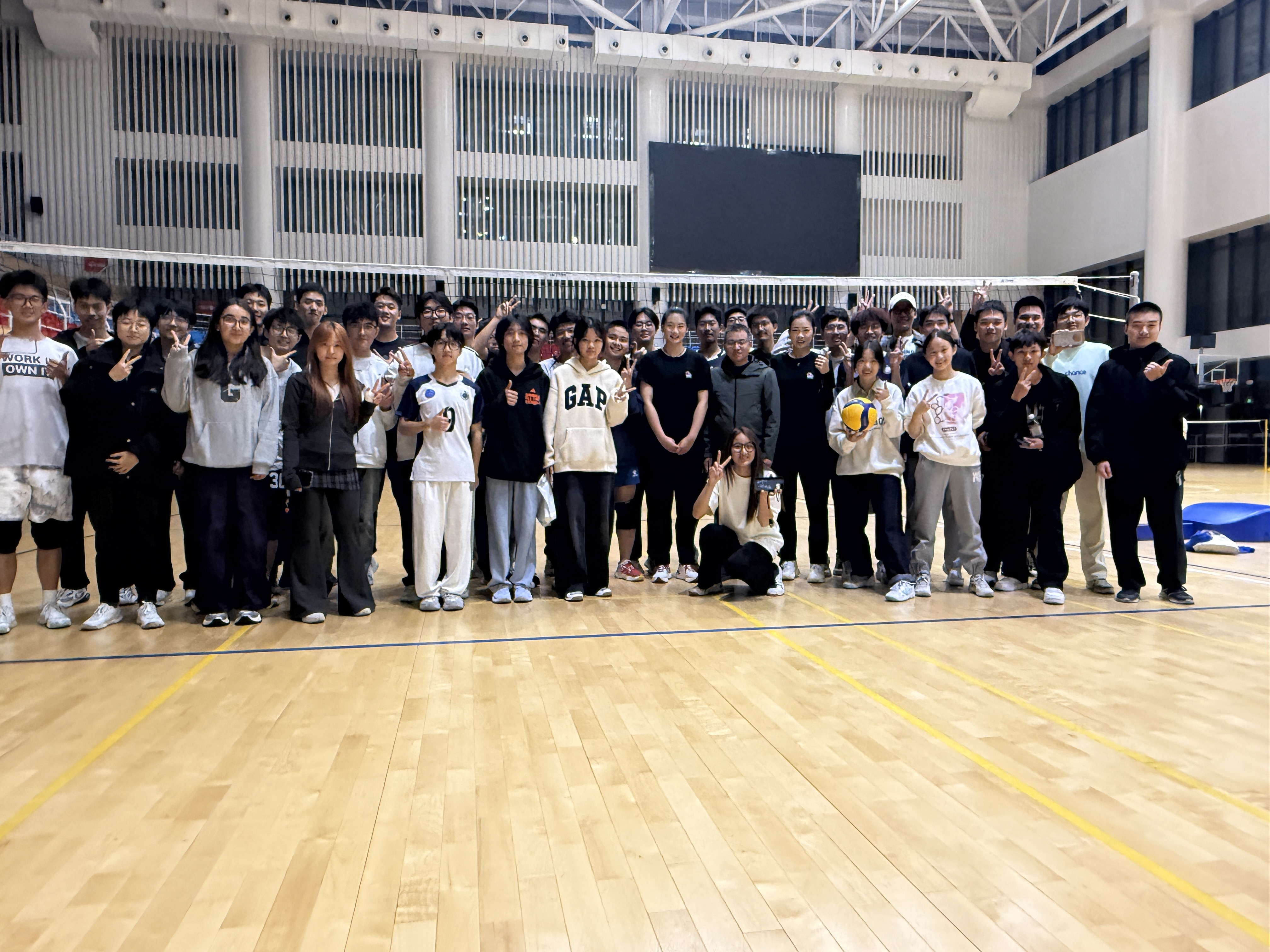 随后,在姚欣悦、鲍雨檬的带领下,同学们以“牧星一公里”活动进行热身,充分激活身体机能。热身结束后,她们带领同学们来到健翔体育馆,示范垫球、接应、扣杀等基础动作,细致讲解各类技术动作的核心技巧,为让同学们更直观感受专业水准,她们还邀请校邀请同学互动,现场演示战术配合,手把手纠正动作细节,让大家收获颇丰。随后,她们与同学们开展6V6、2V6体验赛。赛场上,同学们热情高涨,每一次精准传球、每一记有力扣杀都引来场边阵阵欢呼,运动激情在赛场尽情释放。赛后,她们为同学们送上签名,并合影留念,定格下这段充满活力与温情的美好时光。